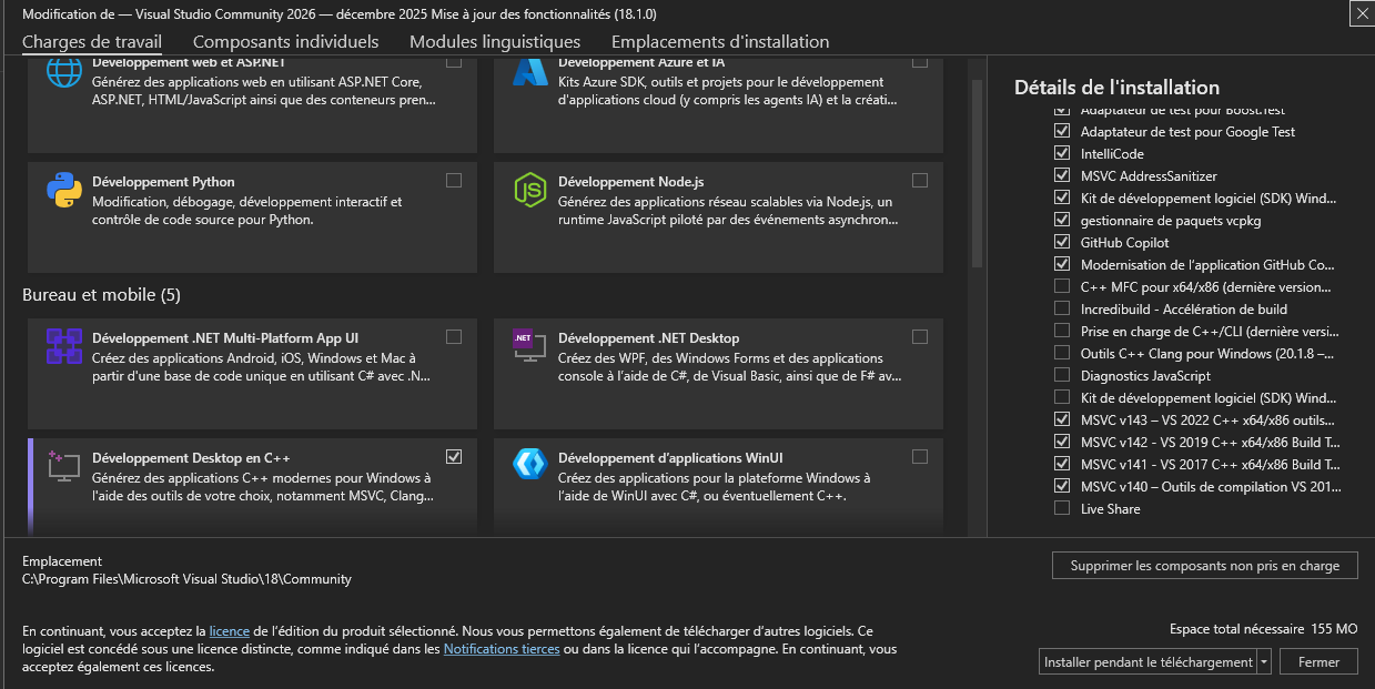 j’avais installé les outils de développement Python alors qu’il faut ceux d’exécutions de VC++ :