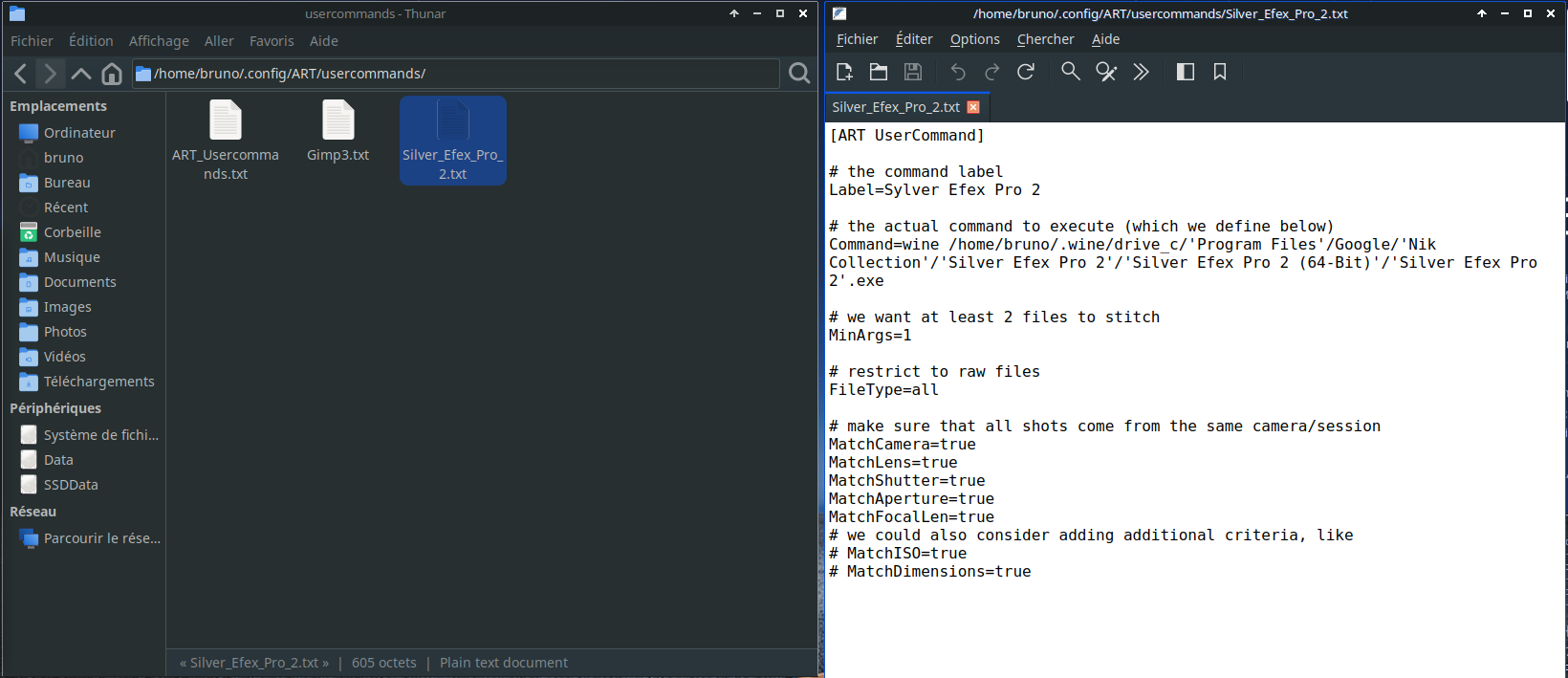 J’avais essayé pour NIK Collection le même chemin que celui que tu m’avait indiqué pour GIMP mais en raison des nombreux espaces dans les différents intitulé de NIK Collection ça ne marchait pas.