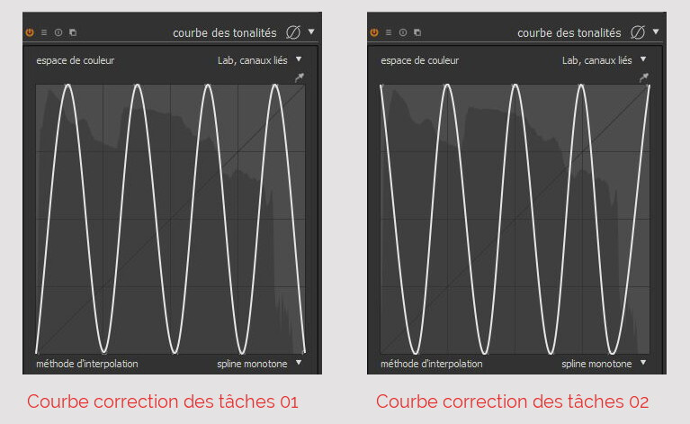 Il y a eu un post sur darktable.fr au temps où CaraFife y était encore, quelqu’un avait proposé 2 courbes de base pour visualiser les taches (rudement efficaces) du genre de :
