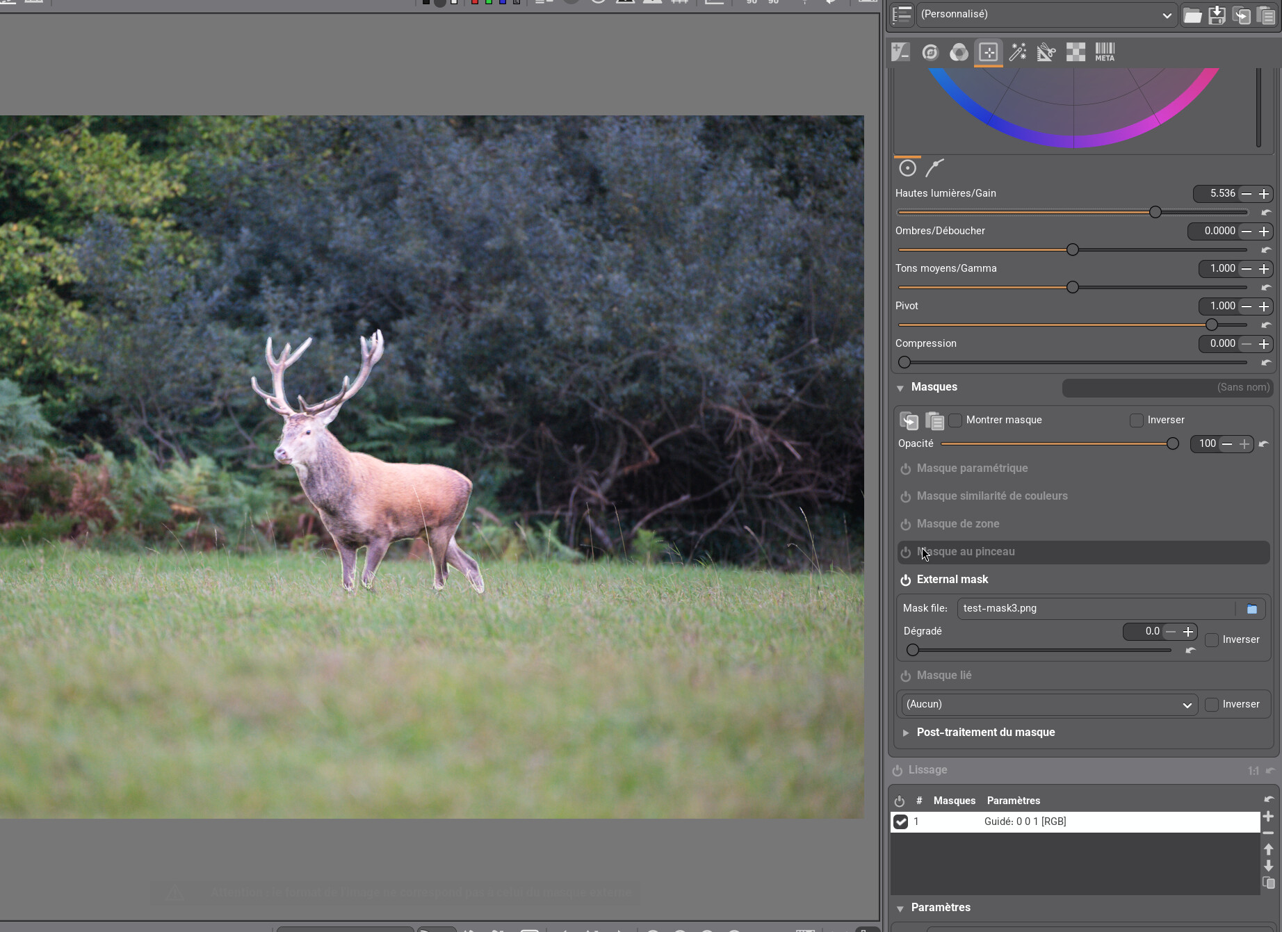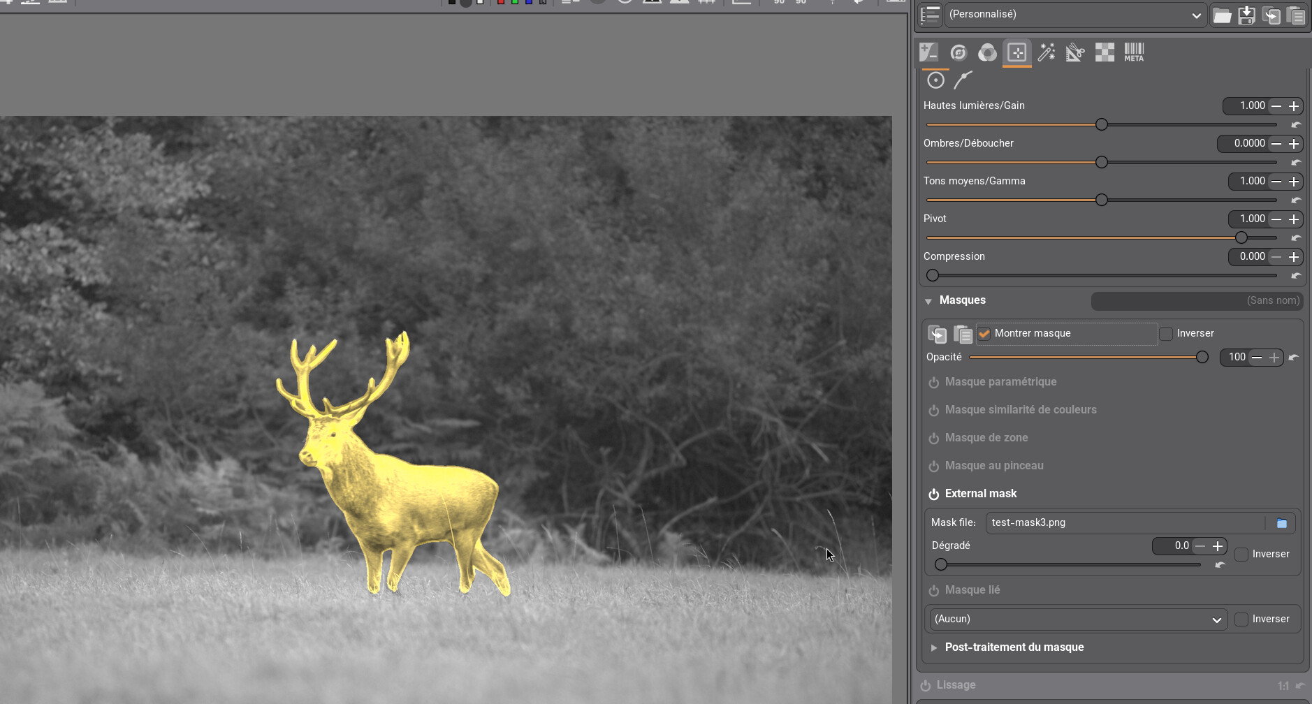 Ici surexposition du masque, pour démonstration sans intérêt photographique :