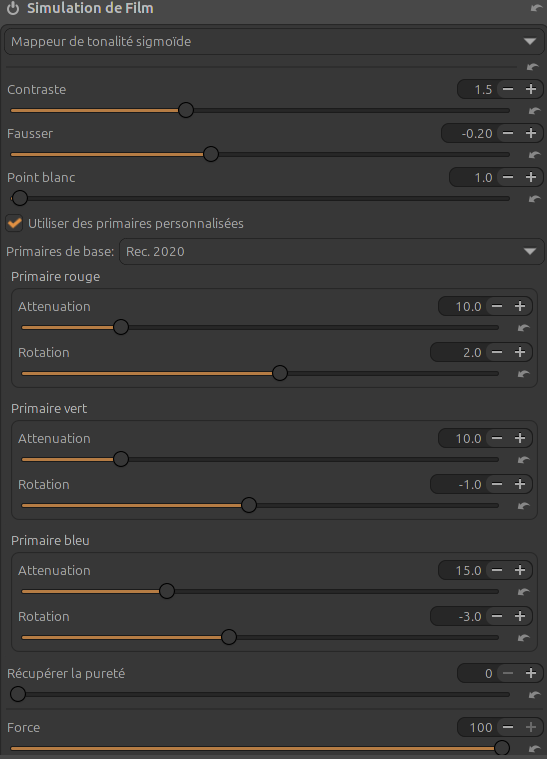 PS Si l’on dispose également de sigmoide dans les options du memu de simulations de films d’ART qui pour le coup est un mappeur de tonalités (comme celui de DT) avec son tableau de bord :