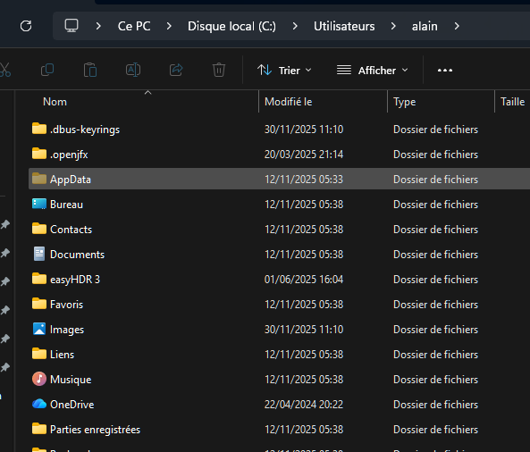 - Ensuite l’on peut parcourir le répertoire C: / Utilisateurs / nom de l’utilisateur/