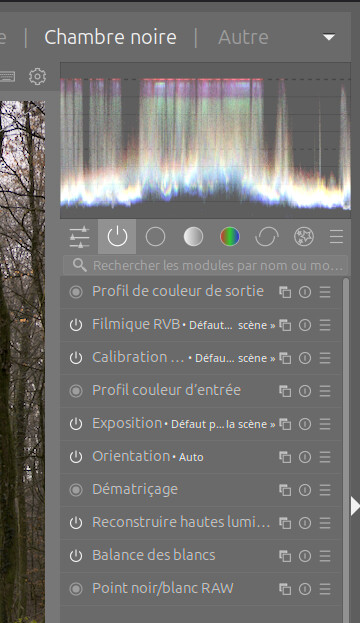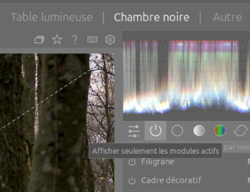Si tu ouvres ton RAW sur Dartable tu peux voir les modules qui sont actifs en cliquant sur le premier bouton "Afficher seulement les modules actifs”