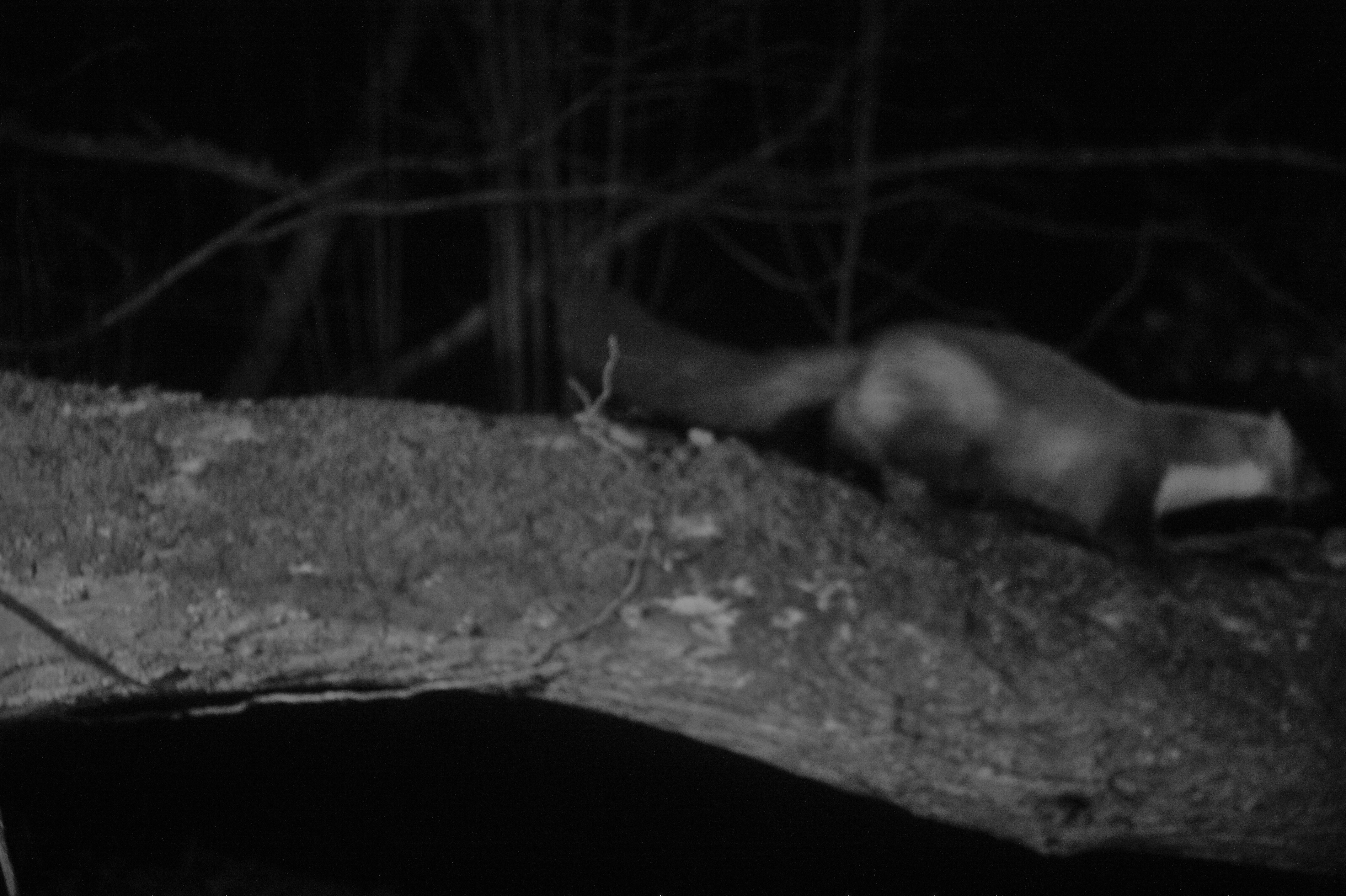 exemple de photo infrarouge de nuit, la mise au point est foirée, Canon 450D, 3 flashs avec filtre IR 700 nm, déclenchement par detecteur IR DIY la fouine à mis 2 semaines à venir, elle à pris peur avec le bruit du déclenchement, elle n’est pas encore revenue mais j’ai le temps.