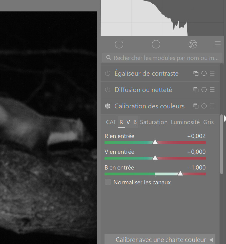 l’autre non linéaire assombri beaucoup la prise. Il faudra que je vois comment faire les réglages N/B et pour ce profil d’entée. Je préfère utiliser une chaîne linéaire pour les traitements !