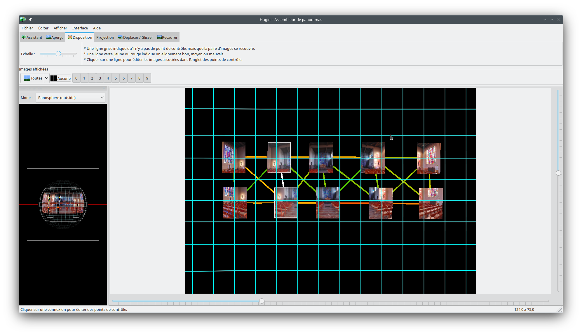 Ce que j’apprécie avec xpano c’est qu’il est très performant pour assembler sans intervention manuelle des images compliquées qui nécessitent souvent d’éditer ou ajouter manuellement des points de contrôle que Hugin n’a pas réussi à trouver.