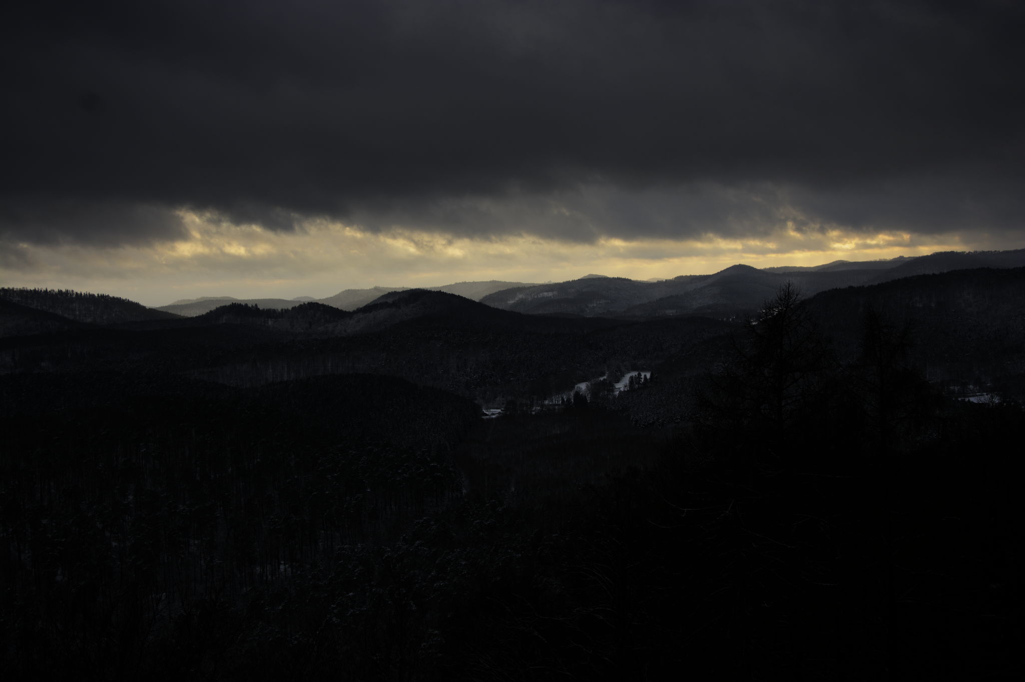Pour celle-ci j’ai activé le “mappeur de tonalité sigmoîde” dans l’onglet simulation de film (entre autre). J’ai voulu conserver l’aspect menaçant du ciel avec un filtre dégradé (mais je pense que l’on peut encore récupérer du détail) J’ai débouché les ombres mais sans trop éclairer les zones sombres pour conserver le réalisme de la scène avec de la lumière douce. Il me semble que la température du ciel de la zone la plus claire (que j’ai obtenue en réduisant les blancs dans l’égaliseur tonal) convient à la lumière d’un ciel d’hiver au coucher de soleil.